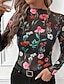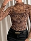 نسائي بلوزة طباعة ورد جلد نمر أنيق مثيرة كلاسيكي كم طويل رقبة عالية قمصان عادية مناسب للبس اليومي مناسب للعطلات مناسب للخارج أسود وردي بلاشيهغ بني كاكي رمادي فاتح الصيف الربيع