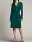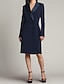 فستان كوكتيل ضيق فستان أنيق ضيف زفاف ملابس عمل بارتفاع الركبة بأكمام طويلة رقبة علوية سباندكس مع ثنيات وقصة مميزة