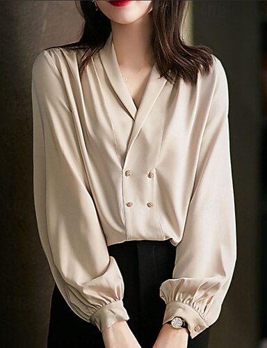 قميص نسائي أنيق عصري بأكمام طويلة بلوزات عادية بياقة قميص عمل أسود أخضر فاتح وردي أزرق ربيع خريف شتاء
