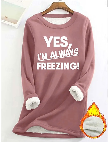 سويت شيرت نسائي من الصوف مطبوع عليه حروف للارتداء اليومي في الشارع مريح غير رسمي برقبة دائرية وأكمام طويلة ومرن للغاية مناسب للخريف والشتاء ومريح من القماش الناعم القابل للتنفس