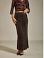 نسائي تنورة أنيق عتيق طويل ملمع طويل للأرض خصر عالي التنانير قابل للبسط أسود الصيف نايلون سباندكس