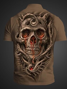 رجالي الرسم جماجم تي شيرت بلايز تي شيرت دراجة نارية كم قصير تي شيرت طباعة ثلاثية الأبعاد رقبة عالية مدورة قميص عتيق موضة مصمم الأماكن المفتوحة فضفاض مناسب للبس اليومي بني للربيع والصيف ملابس S M L XL