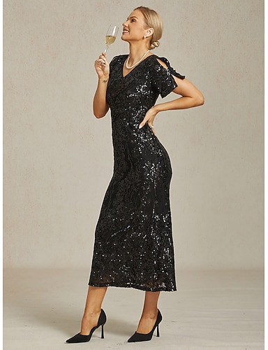 نسائي فستان طويل فستان شيث فستان البوق حورية البحر أنيق حفلة كوكتيل جفاء حفلة ليلية حفلة كوكتيل ورد كم قصير V رقبة أسود الصيف الربيع الخريف الشتاء