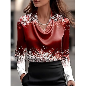 عيد الميلاد المجيد نسائي قميص ظل الرسم ندفة ثلجية أنيق كاجوال كم طويل رقبة درابيه قمصان عادية عمل ملابس الحفلات والسهرات مناسب للبس اليومي مكشكش ثنيات نبيذ أزرق أرجواني الخريف الشتاء