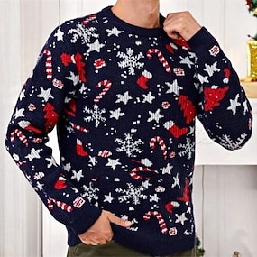 سترة عيد الميلاد القبيحة للرجال، سترة محبوكة بطبعة ندفة الثلج، سترة رأس السنة الجديدة، سترة خارجية يومية بأكمام طويلة وياقة دائرية، أزرق داكن، أزرق، خريف وشتاء، مقاس S M L