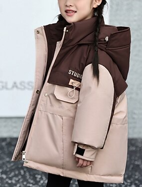 أطفال للفتيات سترة أسفل سترة خارجية سترة البخاخ لون الصلبة موضة مضاد للماء الدفء ضد الرياح الأماكن المفتوحة معطف ملابس خارجية 4-12 سنة الخريف أسود وردي بلاشيهغ البيج