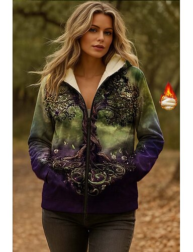 نسائي هوديس بسحاب الرسم هندسي زخرفات أنيق دافئ عتيق كم طويل مع قبعة قمصان عادية المنزل عمل ملابس الحفلات والسهرات إحزم سحاب طباعة أخضر الربيع الخريف الشتاء