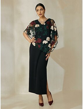 فستان نسائي قصير بياقة على شكل حرف V وقميص من الشيفون الأسود بطبعة زهور أنيقة غير رسمية يومية للعطلات الربيعية والخريف