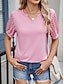 نسائي قميص بلوزة لون الصلبة أنيق كاجوال كم قصير الرقبة المحززة قمصان عادية مناسب للبس اليومي دانتيل بقع أخضر زيتي أسود أبيض وردي بلاشيهغ أزرق سماوي الصيف الربيع