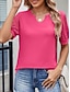 نسائي تي شيرت سهل موضة الحديث كاجوال كم قصير V رقبة قمصان عادية مناسب للبس اليومي عطلة نهاية الاسبوع بقع Buttons وردي بلاشيهغ أزرق بني أخضر الصيف الربيع