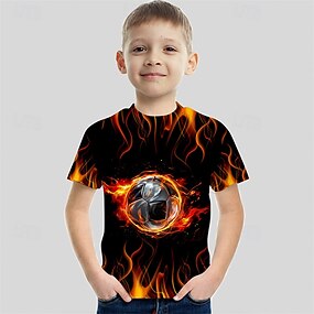 للصبيان 3D كرة القدم تي شيرت كنزة مطبوعة كم قصير الصيف الربيع موضة أساسي أطفال 4-12 سنة رقبة العمل الأماكن المفتوحة فضفاض مناسب للبس اليومي عادي