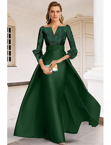 A-الخط طول الأرض فساتين السهرة أنيق زهري 3/4 الكم V رقبة زفاف رسمي قماش الجاكار مع جيبة