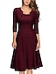 عيد الميلاد المجيد نسائي فستان ميدي فستان شكل حرف A كاجوال فساتين شبه رسمية مناسب للعطلات عادي سهل 3/4 الكم رقبة مربعة نبيذ أخضر الشتاء