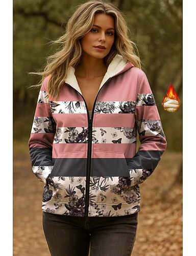 نسائي هوديس بسحاب الرسم هندسي زخرفات أنيق دافئ عتيق كم طويل مع قبعة قمصان عادية المنزل عمل ملابس الحفلات والسهرات إحزم سحاب طباعة وردي بلاشيهغ الربيع الخريف الشتاء