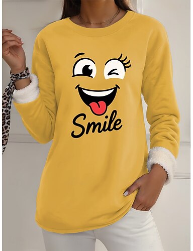 نسائي بيجامة سويت شيرت مبطنة بالصوف كنزة صوفية Pullover بلوزات أحرف دافئ أناقة الشارع كاجوال كم طويل رقبة عالية مدورة قمصان طويلة المنزل مناسب للبس اليومي فضفاض طباعة