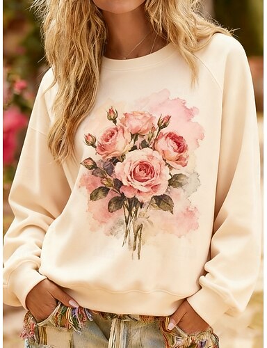 نسائي Pullover بلوزات ورد موضة أناقة الشارع كلاسيكي كم طويل رقبة عالية مدورة رقبة دائرية قمصان عادية مناسب للبس اليومي فضفاض طباعة البيج الربيع الخريف