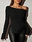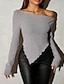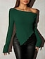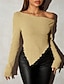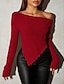 نسائي سترة جاكيت صوف أناقة الشارع مثيرة كاجوال لون الصلبة دون الكتف محبوك حواف غير منتظمة كم طويل قمصان عادية متماسكة مناسب للبس اليومي مناسب للعطلات مناسب للخارج أحمر الخمر أسود الخريف الشتاء