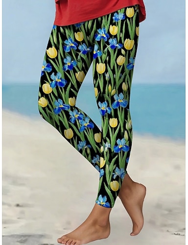 نسائي سراويل طماق أناقة الشارع كاجوال مكتمل الطول خصر عالي ورد مرونة الخصر طباعة التنفس إمكانية مريح قابل للبسط عطلة شارع مناسب للبس اليومي زهري الصيف الربيع الخريف عادي