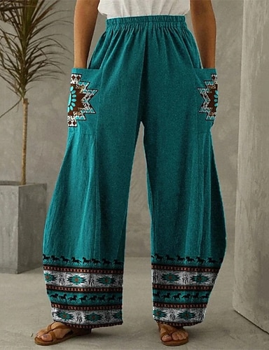 نسائي صفيق ساق عريضه تشينوز العطلة عتيق النمط العرقي مكتمل الطول خصر عالي الرسم هندسي مجرد سريع جاف التنفس إمكانية ناعم غير مطاطي رسمي الأماكن المفتوحة عطلة أسود أزرق كاكي الصيف الربيع
