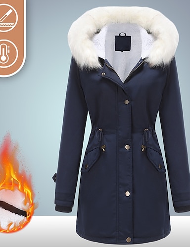 نسائي معطف شتوي جاكيت شتوي حديقة ضد الهواء الدفء سحاب جيب رباط طوق الفراء أنيق أسلوب الشارع سهل شارع فضفاض مناسب للبس اليومي سحاب عادية هودي عادي كم طويل ملابس خارجية أسود أخضر داكن أزرق داكن