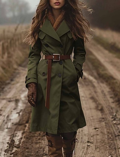 نسائي ترانش كوت الدفء مريح جيب Buttons موضة الخارج سهل مناسب للخارج كاجوال / يومي عطلة نهاية الاسبوع صدر مزدوج طويلة طوي عادي كم طويل ملابس خارجية أسود أحمر خضار العسكري الخريف الشتاء