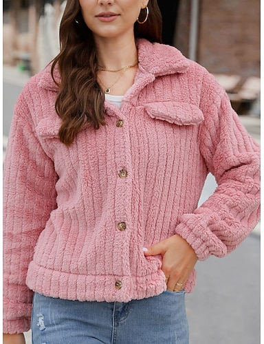 نسائي معطف شتوي سترة شيربا مريح متنفس جيب Buttons كاجوال سهل عطلة شارع فضفاض مناسب للبس اليومي صدر فردي قصيرة طوي عادي كم طويل ملابس خارجية وردي بلاشيهغ أحمر أخضر الربيع الخريف
