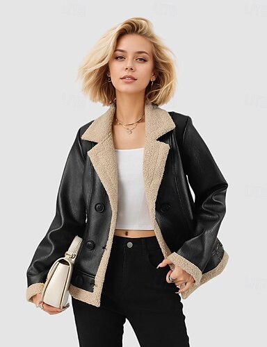 نسائي جواكيت جلد سترة شيربا الدفء مريح سحاب جيب كاجوال سهل الأماكن المفتوحة عطلة شارع فضفاض قصيرة طوي عادي كم طويل ملابس خارجية أسود كاكي البيج الخريف الشتاء