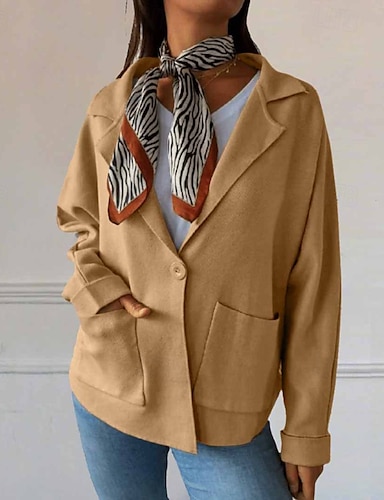 نسائي جاكيت شتوي سترة الصوف مريح متنفس جيب Buttons كاجوال سهل عطلة شارع فضفاض مناسب للبس اليومي صدر فردي عادية طوي عادي كم طويل ملابس خارجية مشمشي الربيع الخريف