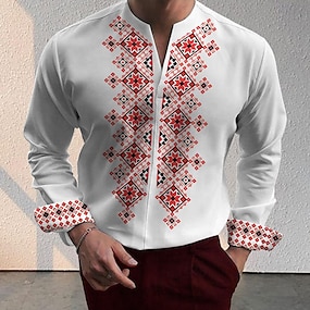 رجالي ترايبال عتيقة الهندسة قميص زر حتى القميص كم طويل موضة أناقة الشارع مصمم الأماكن المفتوحة فضفاض مناسب للبس اليومي الصيف الخريف V رقبة طباعة أسود وردي بلاشيهغ أزرق أخضر كاكي