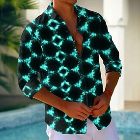 رجالي هندسي شبكة / منقوشة توهج النيون قميص زر حتى القميص قميص كاجوال كم طويل عارضة الازياء عطلة مناسب للبس اليومي ملابس الشارع الصيف الربيع طوي طباعة ثلاثية الأبعاد قميص بياقة أحمر أزرق أرجواني أخضر
