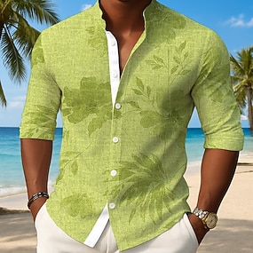 رجالي النباتات أوراق النخيل قميص زر حتى القميص قميص بياقة واقفة كم طويل كاجوال الأماكن المفتوحة عطلة مناسب للبس اليومي الربيع الخريف اليوسفي طوق الفرقة الياقة طباعة ثلاثية الأبعاد قميص يشبه الكتان