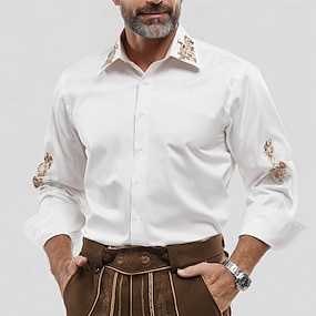 رجالي مهرجان أكتوبر التقليدي قميص زر حتى القميص قمصان تراشتن كم طويل كاجوال مناسب للبس اليومي مناسب للعطلات الصيف الربيع طوي طباعة ثلاثية الأبعاد قميص يشبه الكتان أبيض