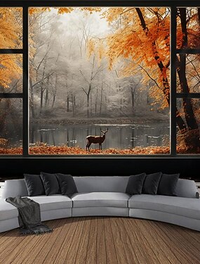الخريف الغابات شنقا نسيج الغزلان جدار الفن كبير نسيج جدارية ديكور صورة خلفية بطانية الستار المنزل غرفة نوم غرفة المعيشة الديكور