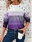 تي شيرت نسائي بأكمام طويلة مزين بتدرجات الألوان العتيقة أنيقة غير رسمية طوك العادي دائرية بالأكمام الطويلة مطبوع يوميًا في عطلة نهاية الأسبوع باللون الأزرق والأرجواني والأخضر ربيع خريف شتاء مسبق