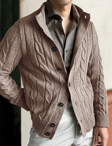 رجالي سترة رسمية سترة من صوف محبوك كابل متماسكة عادية زرر لون الصلبة موضة كلاسيكي مناسب للبس اليومي مواعدة ملابس خريف & شتاء أسود كاكي M L XL