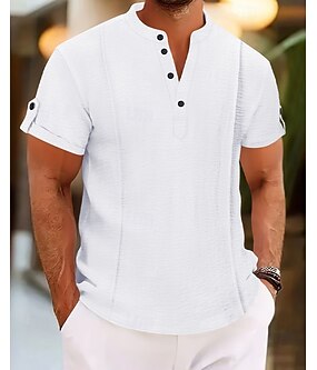 رجالي قميص قميص كتان قميص بياقة الفرقة قميص بوبوفر قميص صيفي قميص الشاطئ سهل عطلة كوريس أسود أبيض وردي بلاشيهغ أخضر كم قصير هينلي الصيف ملابس
