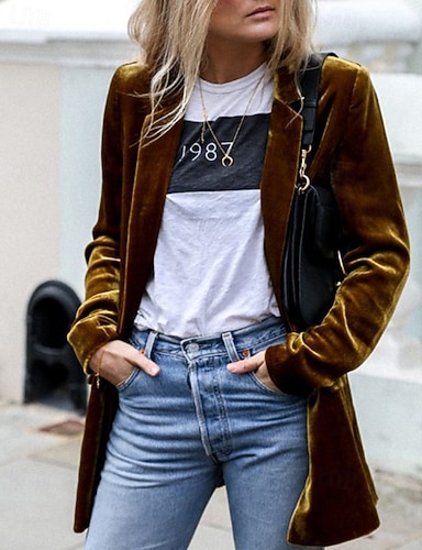 نسائي سترة مريح متنفس جيب الأمام مفتوح كاجوال ورد المكتب شارع فضفاض مناسب للبس اليومي صدر فردي طويلة طوي عادي كم طويل ملابس خارجية زهري فاتح وردي بلاشيهغ أزرق البحرية الربيع الخريف