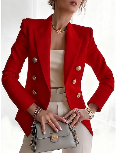 نسائي سترة مريح متنفس طباعة موضة كاجوال سهل المكتب \ الوظيفة صدر مزدوج عادية شق الصدر علوي عادي كم طويل ملابس خارجية أسود أحمر أزرق الخريف الشتاء