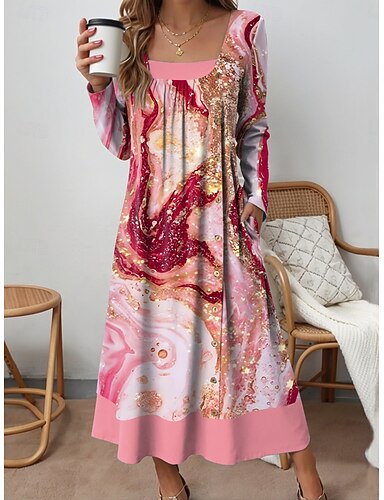 نسائي فستان ميدي فستان شيفت كاجوال مناسب للبس اليومي فضفاض صالح الرسم هندسي مجرد كم طويل رقبة مربعة وردي بلاشيهغ أزرق أرجواني أخضر الربيع الخريف الشتاء
