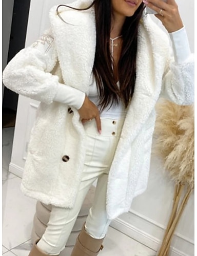 نسائي سترة الصوف معطف تيدي الدفء متنفس Buttons جيب كاجوال سهل عطلة شارع مناسب للبس اليومي مناسب للخارج صدر فردي عادية طوي عادي كم طويل ملابس خارجية أبيض الخريف الشتاء