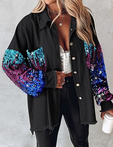 نسائي جاكيت كاجوال مريح متنفس جيب Buttons كاجوال ألوان متناوبة عطلة شارع فضفاض مناسب للبس اليومي صدر فردي قصيرة طوي عادي كم طويل ملابس خارجية أسود الربيع الخريف