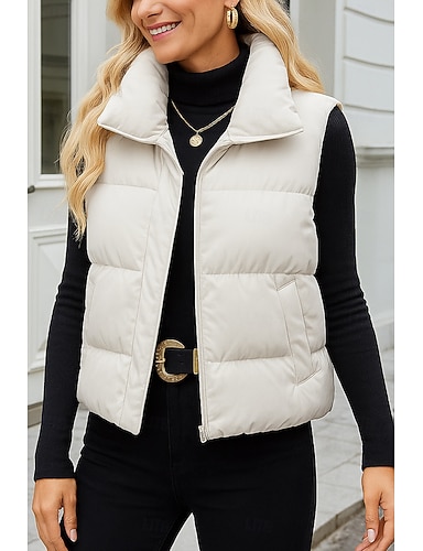 نسائي سترة الدفء مريح سحاب جيب كاجوال سهل الأماكن المفتوحة شارع مناسب للعطلات مناسب للبس اليومي سحاب عادية مرتفعة عادي بدون كم ملابس خارجية أسود كاكي البيج الشتاء