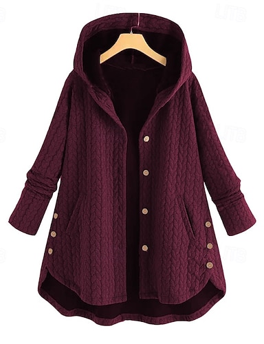 نسائي معطف حديقة الدفء مريح Buttons كاجوال سهل عطلة شارع مناسب للبس اليومي مناسب للخارج طويلة مع قبعة عادي كم طويل ملابس خارجية أرزق بحري أسود نبيذ الخريف الشتاء