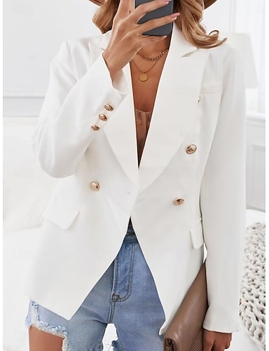 نسائي سترة مريح متنفس جيب أنيق رسمي سهل المكتب شارع فضفاض مناسب للبس اليومي صدر مزدوج عادية طوي عادي كم طويل ملابس خارجية أبيض كاكي الصيف الربيع