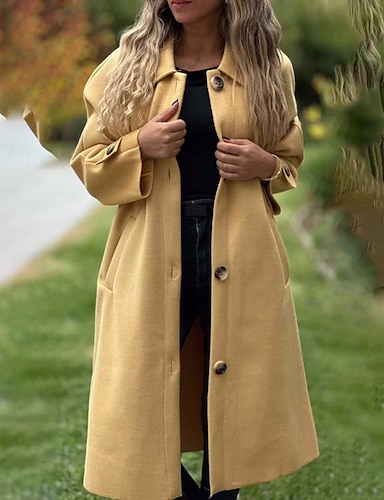 نسائي معطف الدفء مريح جيب Buttons موضة سهل الأماكن المفتوحة عطلة صدر فردي طويلة طوي عادي كم طويل ملابس خارجية أسود أصفر وردي بلاشيهغ الخريف الشتاء