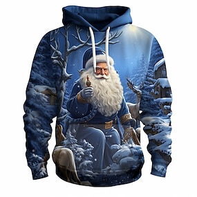 بلوفر رجالي بغطاء رأس ثلاثي الأبعاد من سانتا كلوز مطبوع عليه رسومات سانتا كلوز بغطاء رأس أزرق وطباعة قبيحة وطباعة ثلاثية الأبعاد للرياضة اليومية ومصمم ملابس الشارع الأساسية