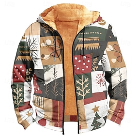 رجالي طباعة باندانا الصوف قبعة كنزات بقبعة بوهيميا موضة كم طويل مع قبعة مناسب للعطلات ملابس الشارع أسود أحمر سحاب جيب الخريف الشتاء مصمم