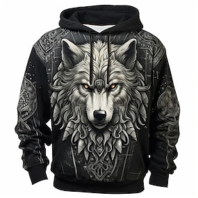 رجالي ذئب ريفي كنزة كم طويل بلوزات مع قبعة عتيق النمط الغربي عطلة مناسب للخارج خريف & شتاء بني رمادي ملابس مصمم طباعة جرافيك S M L XL XXL XXXL