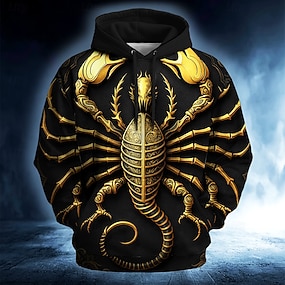رجالي 3D برج العقرب قبعة كنزة كوول حفلة رقبة عالية مدورة نادي ملابس الشارع أسود رباط الخريف الشتاء مصمم