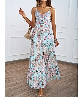 نسائي فستان طويل لباس غير رسمي فستان شكل حرف A زلة اللباس فستان بوهو بوهيميا كاجوال بوهو عطلة مناسب للبس اليومي عادي ورد بدون كم مع حمالة أزرق أخضر الصيف